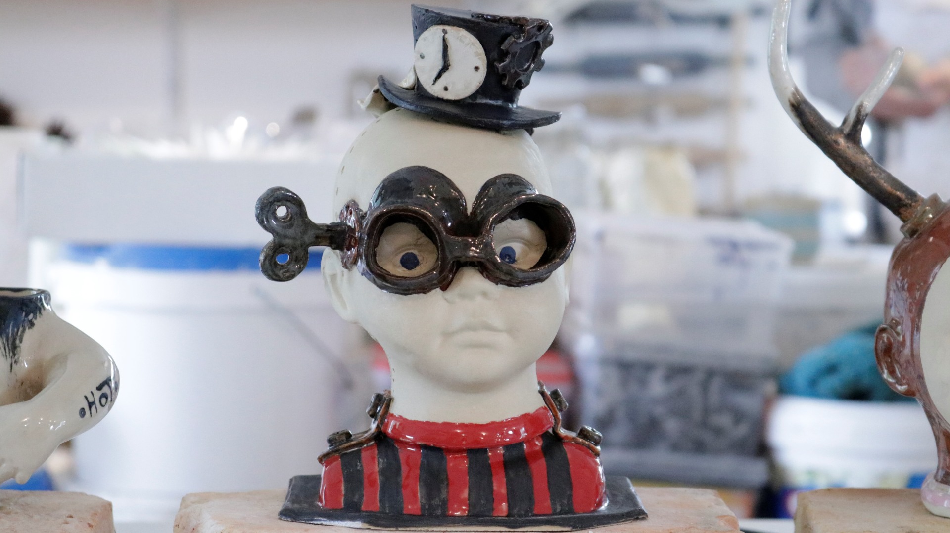 Richard upcycles the rest of the cut metal sheets to create a new piece of art. Everything should be used as much as possible.