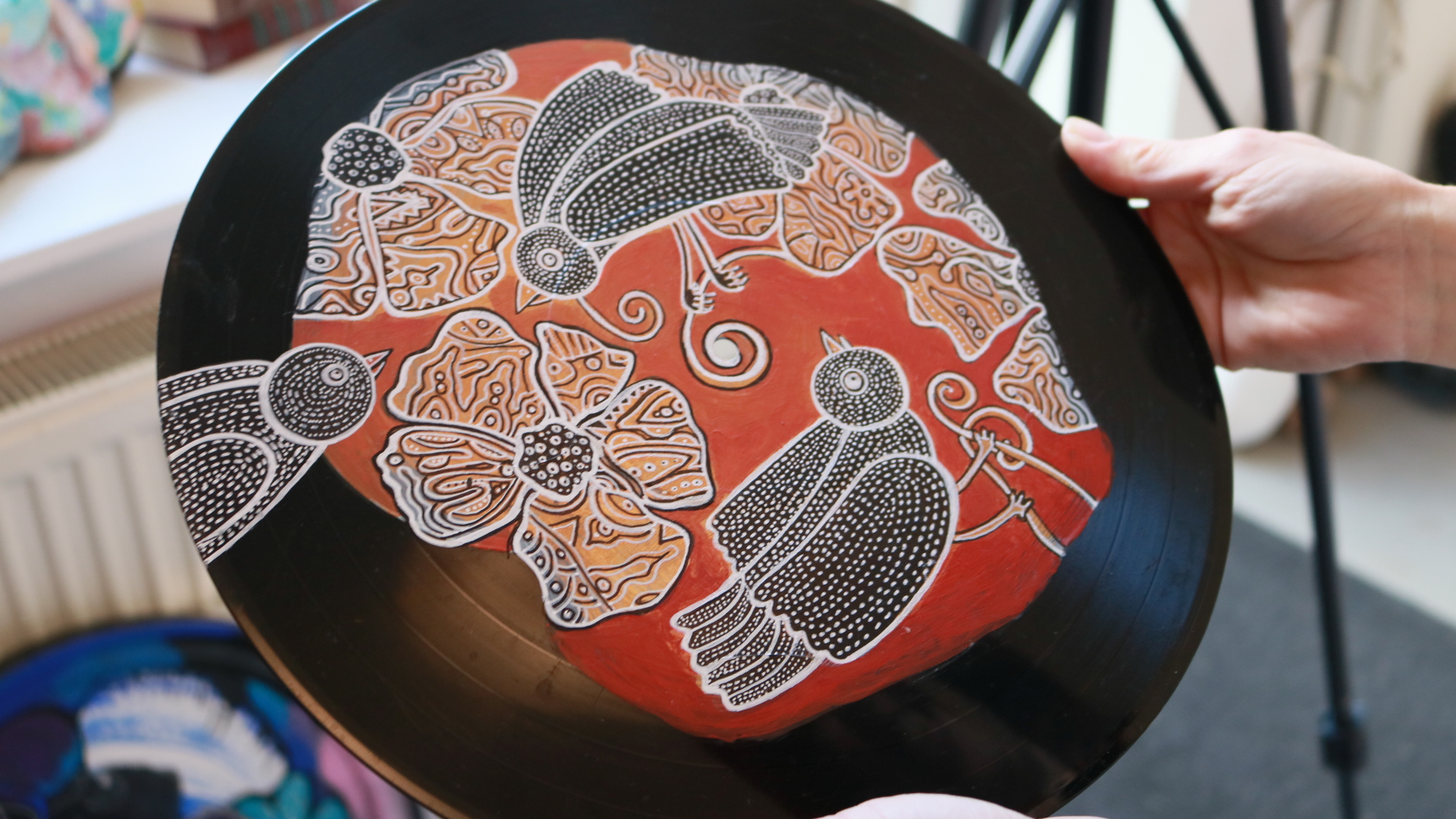 Painting on old LP’s, freely available surfaces and canvass