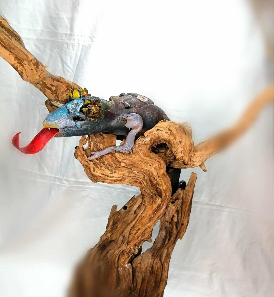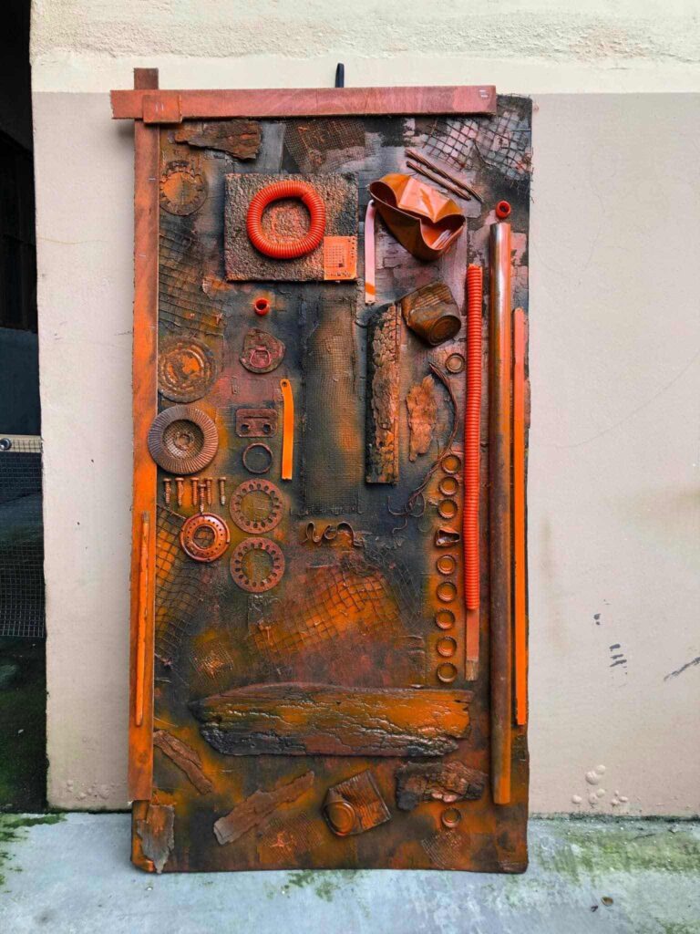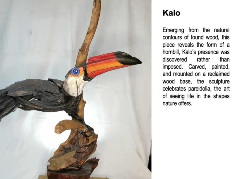 One of his artworks is crafted from recycled materials. The idea came to him when he realized that discarded things still have potential – just like people or art itself. He used junk items such as cans, wires, metal machine parts, and wood for this art piece.